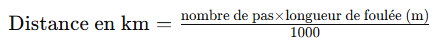 Si votre foulée mesure 70 cm, soit 0,70 m, le calcul est le suivant :