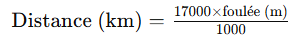 La formule pour convertir 17 000 pas en km